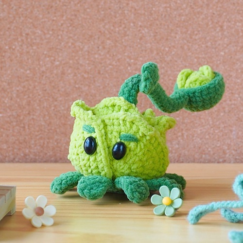 Say hello to a delightful design by Claire Olivia Golden, featuring a charming round cabbage complete with eyes and personality. This pattern cleverly utilizes yarn scraps, stuffing, and basic stitching techniques. The stitches are specifically crafted in the back horizontal bar for added texture and interest, making it an engaging project for crochet lovers.