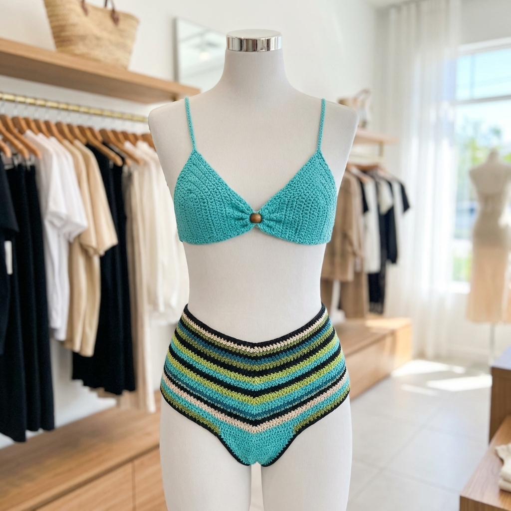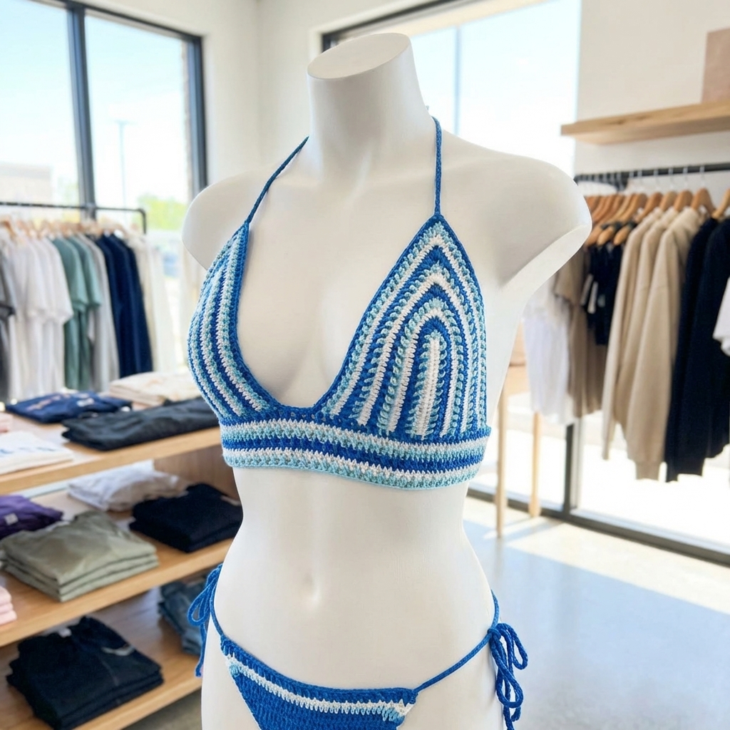 a combination of chain, slip stitch, single crochet, space, and double crochet techniques, this bralette pattern is perfect for crocheters looking to explore various techniques. The gauge for this beach-inspired outfit is 17 stitches by 21 rows, equating to 4 inches in single crochet.