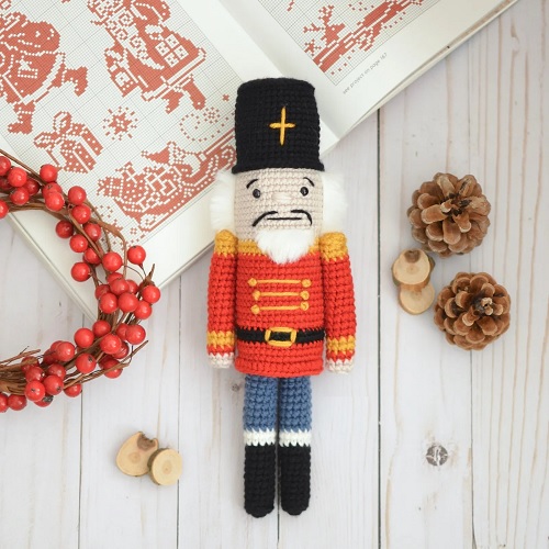This charming Nutcracker measures 10 inches by 3.5 inches and is crafted using a variety of beginner-friendly stitches, such as st, sl st, sc, hdc, flo, and blo. For a detailed pattern, check out Elisa’s creation.