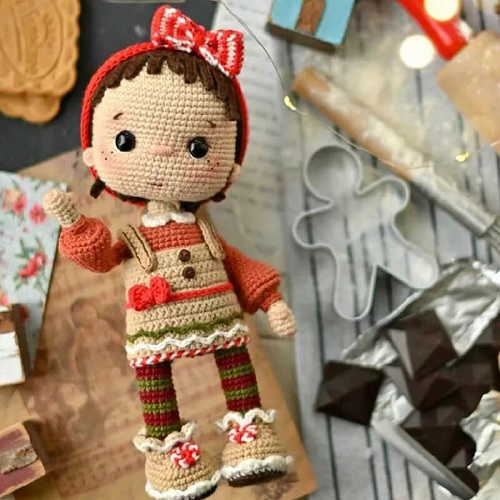 Cuddle up this festive season with the charming Eryhana Gingerbread doll. Crafted using various stitches including sc, inc, dec, ch, dc, hdc, ss, blo, flo, and tr techniques, she is not just adorable but also a fun project for crocheters at any skill level.