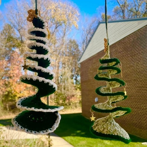 8. Crochet Dual-Toned Christmas Tree Wind Spinner