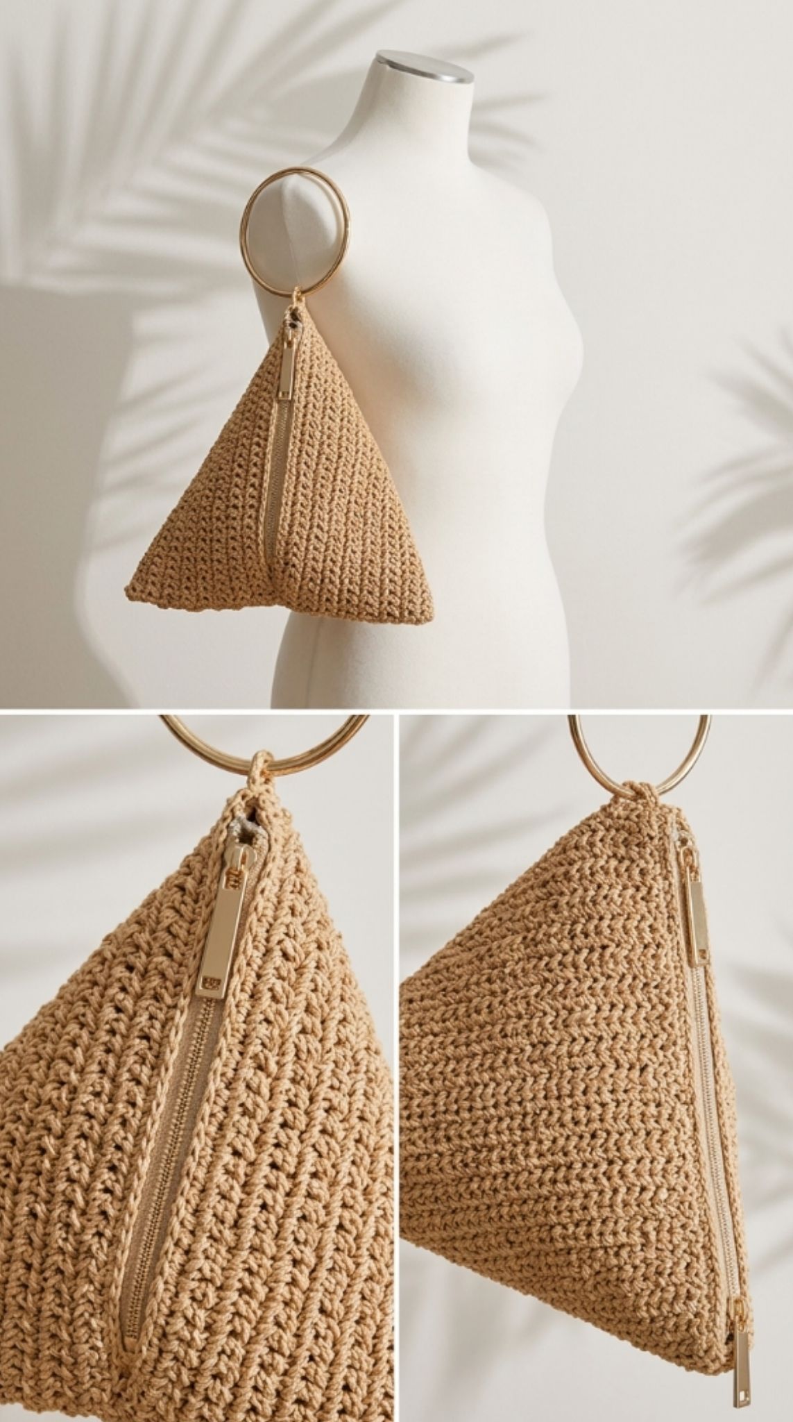 Seeking a crochet handbag that turns heads? The triangle-shaped clutch is an excellent option. Its unique form and elegant design make it perfect for those who want to stand out. You can follow the full pattern on this site to create your own fashionable piece.