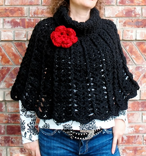 1. Chic Crochet Rose Poncho