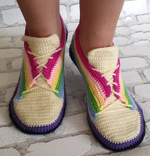 If you are familiar with sc, dc, ch, and sl st crochet techniques, you will find this rainbow footwear pattern to be an enjoyable and straightforward endeavor. Not only will you enhance your crocheting skills, but you will also end up with a vibrant pair of trainers that can brighten anyone’s day. To dive deeper into this project, read this blog post for additional insights.
