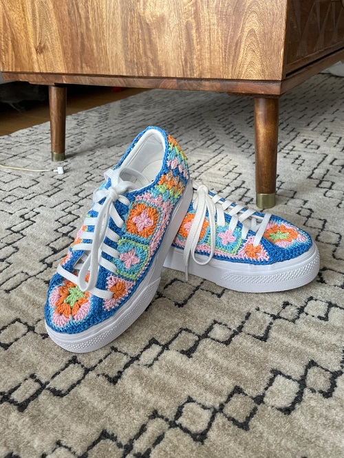 Stand out in any crowd with these eye-catching hand-crocheted trainers embellished with beautiful floral patterns. Not only are they stylish and unique, but they also provide exceptional comfort, ensuring that you can wear them for extended periods without any discomfort.