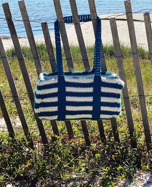 6. Crochet Duffle Bag with Sailor Stripes