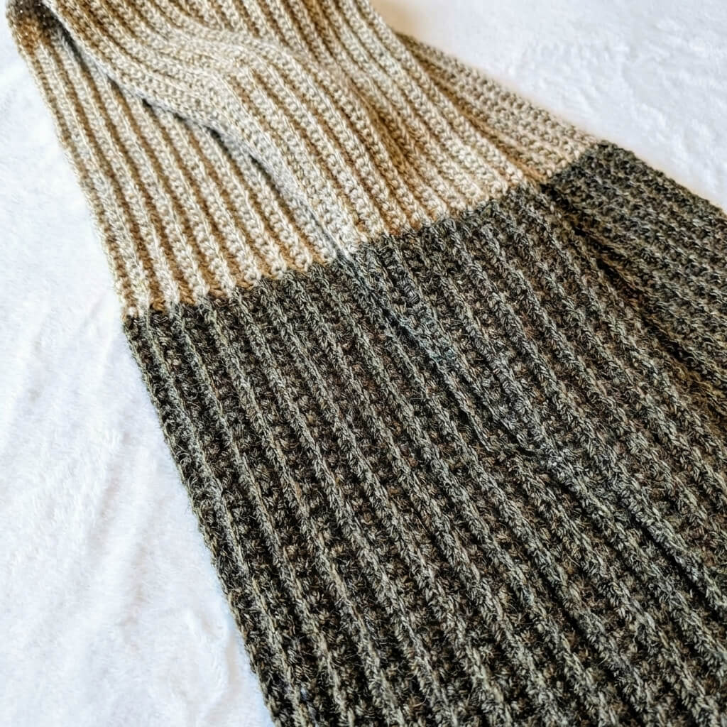 Repeat Row 2 until your scarf reaches approximately 34 inches in length. After reaching this length, fasten off Color A.
