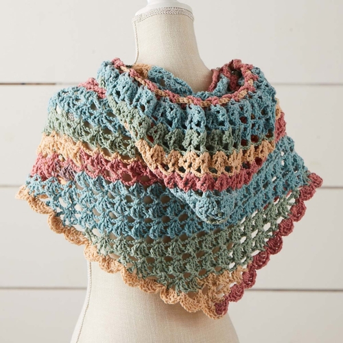 9. Multishaded Lacey Hooded Shawl Crochet Pattern