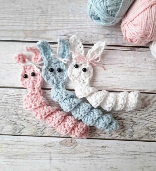 These whimsical crochet bunny worms are an engaging project that includes working in rounds, creating charming 3D spirals, and stitching lively ears. Perfect for using up leftover threads, their cute bows add delightful character. Follow May’s pattern for guidance and inspiration to craft your own adorable bunny worms.