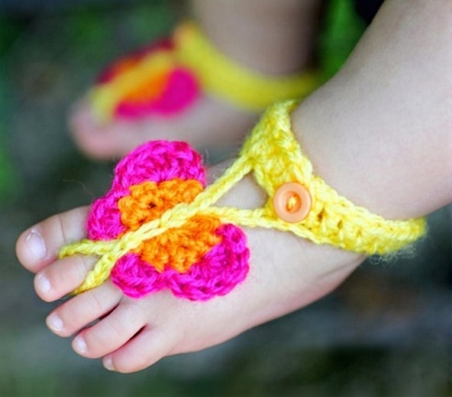 Encourage your child to walk with balance and coordination while showcasing playful style with these butterfly barefoot sandals. A delightful summer project from Sarah, this pattern uses simple stitches to create a couple of pairs from tiny skeins. Add these charming sandals to your collection for a pop of delightful whimsy.