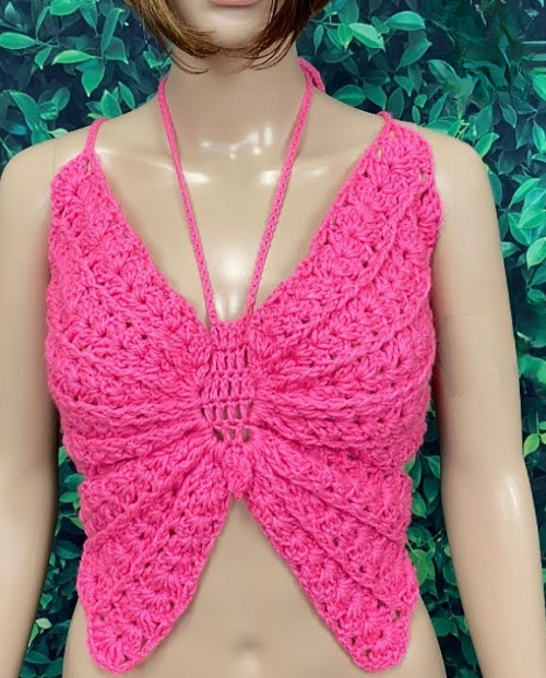 Highlight your unique style with this striking halter top from Your Crochet, featuring elaborate textures and a butterfly-inspired shape. Perfect for a day at the beach or paired with high-waisted pants, this top allows you to confidently showcase your curves. Dive into this project for an exciting way to express your creativity and fashion sense.