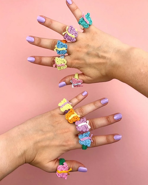 Infuse your accessory collection with playful energy by crafting these delightful rings from My Rainbow Crochet. These beginner-friendly pieces embody the spirit of spring, and their simplicity allows you to easily pair them with various outfits, encouraging endless creativity as you embrace their whimsical charm.
